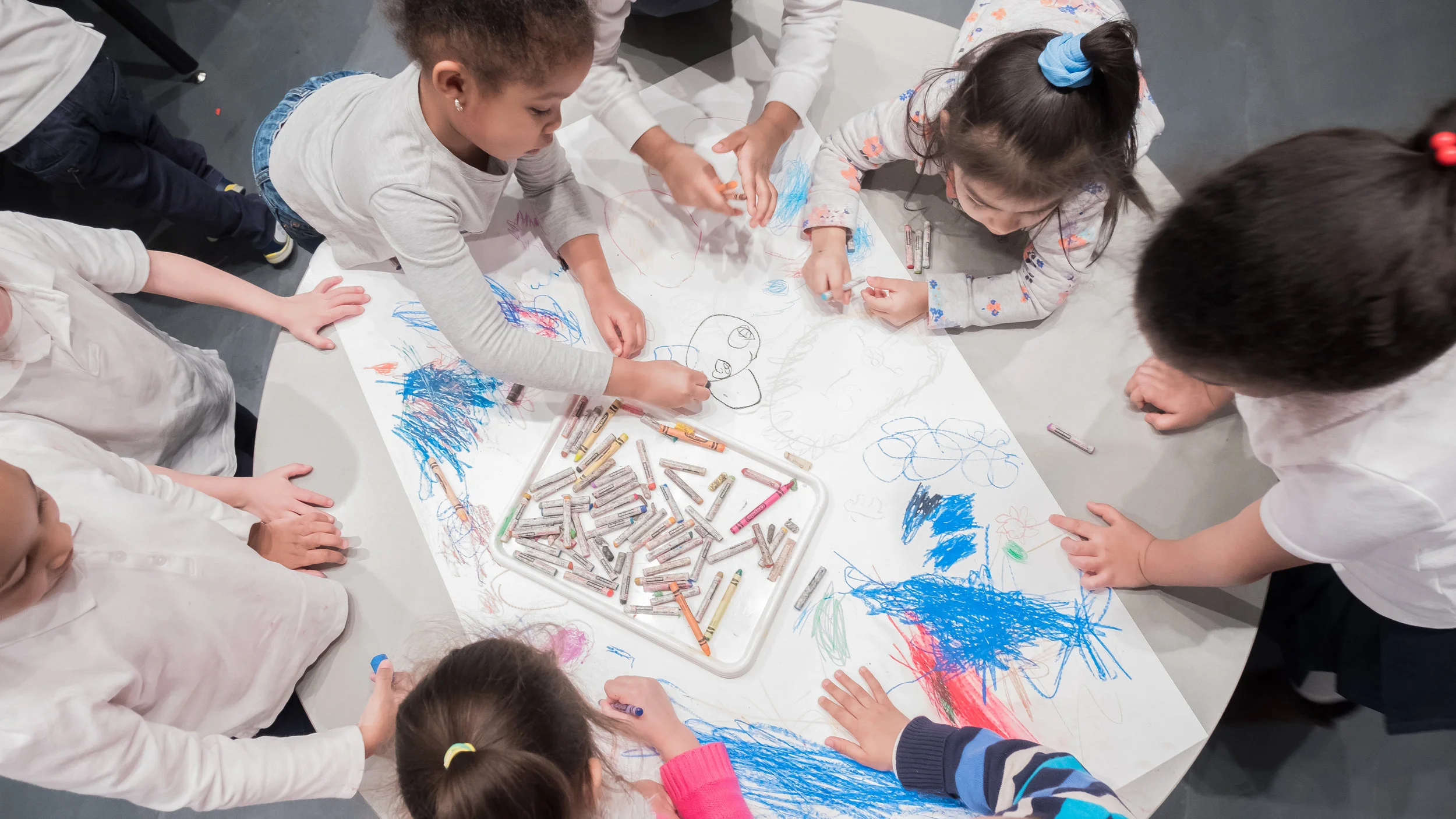 This Sping/Winter term, the Sugar Hill Children’s Museum of Art & Storytelling partnered with six schools, conducting weekly workshops for Pre-K and Kindergarten students. Inspired by the question “What does it mean to be a global citizen?” our Artist Educators, worked with the school’s classroom teachers, led students on a journey of art making and creative discovery. Each workshop consisted of original curricula designed with the specific school in mind. The varieties of class content included storytelling through creative movement, rhythm and sound and exploring a variety of interesting and unusual materials.